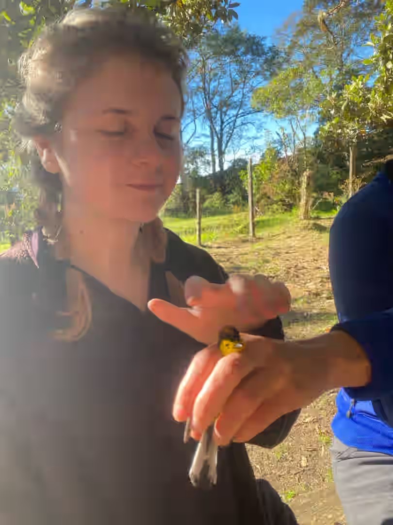 The Bird Team caught a favorite for the day: the yellow-thighed brush finch.